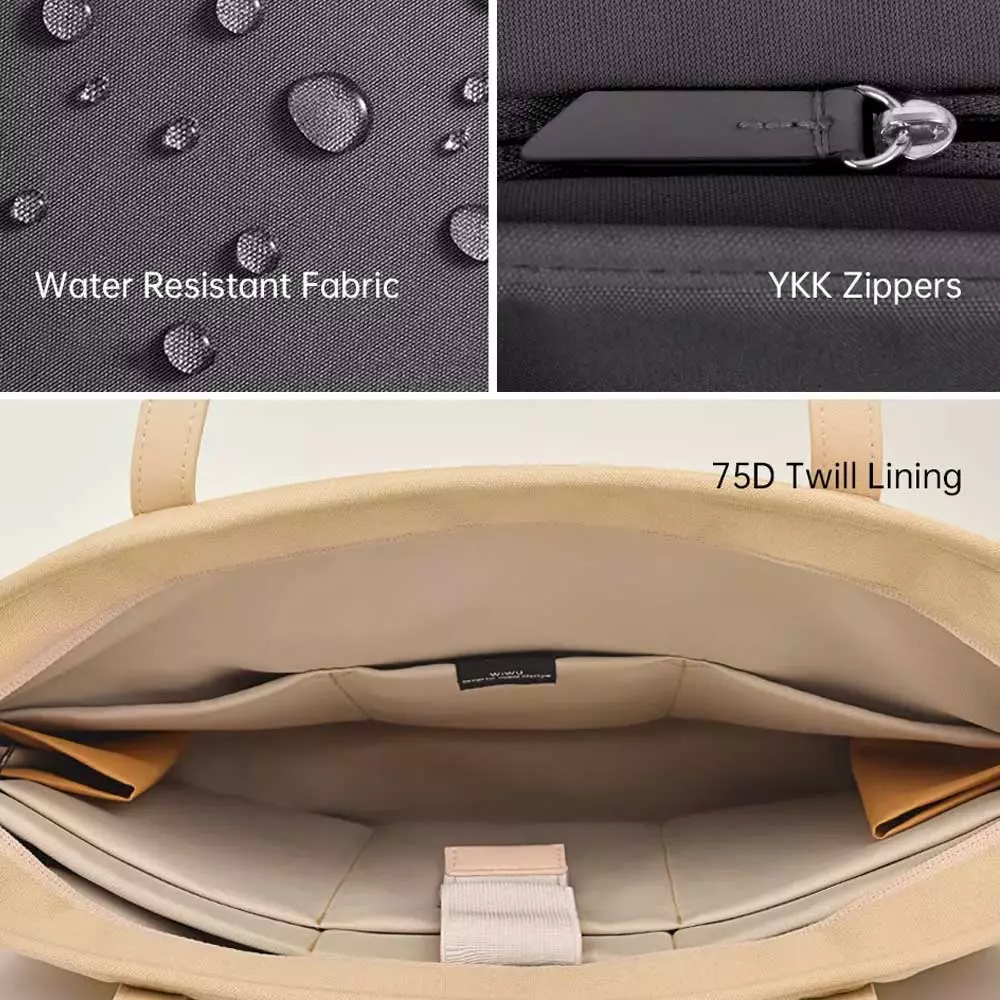 - Our women’s laptop tote bagais made of high-quality, water-repellent, Durable 450D polyester material and 75D twill lining. Ykk zippers and professional padded bag ensure the safety of your belongings.